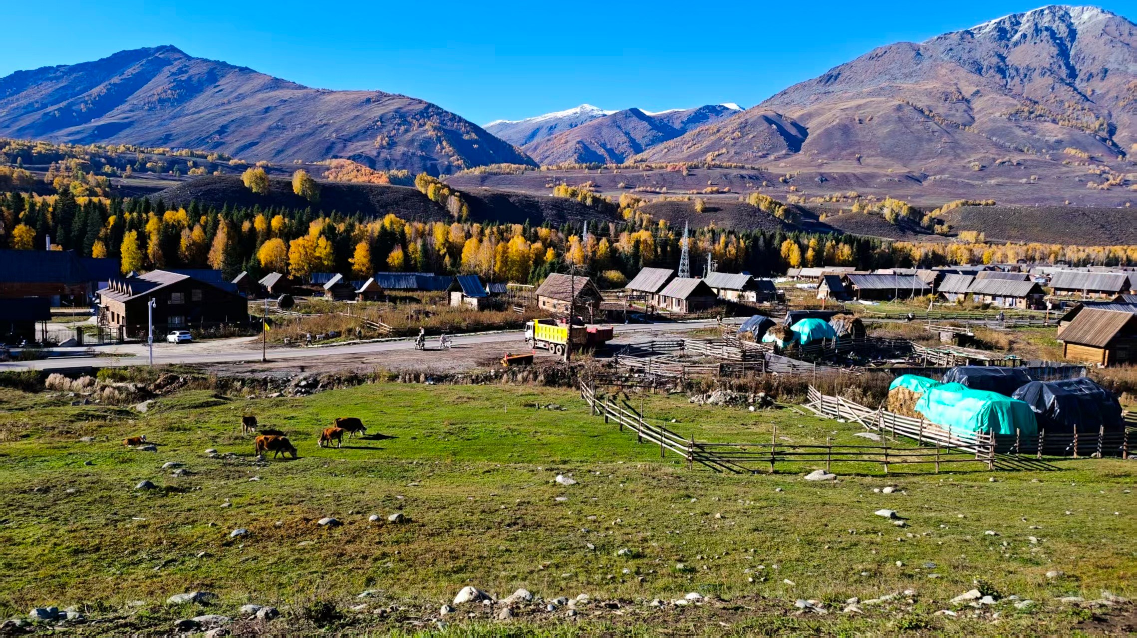 新疆喀納斯湖畔,隱藏著一個被譽為“中國第一村”的美麗小山村——禾木村,我們在禾木村感受到這里的獨特魅力,它被群山和白樺林環抱,宛如一幅生動的秋日畫卷。禾木村的建筑風格獨特,以松樹原木搭建的小屋為主,站在周圍的小山坡上,可以一覽禾木村的全貌,四周群山環抱,形成了一幅和諧而寧靜的秋日畫卷。