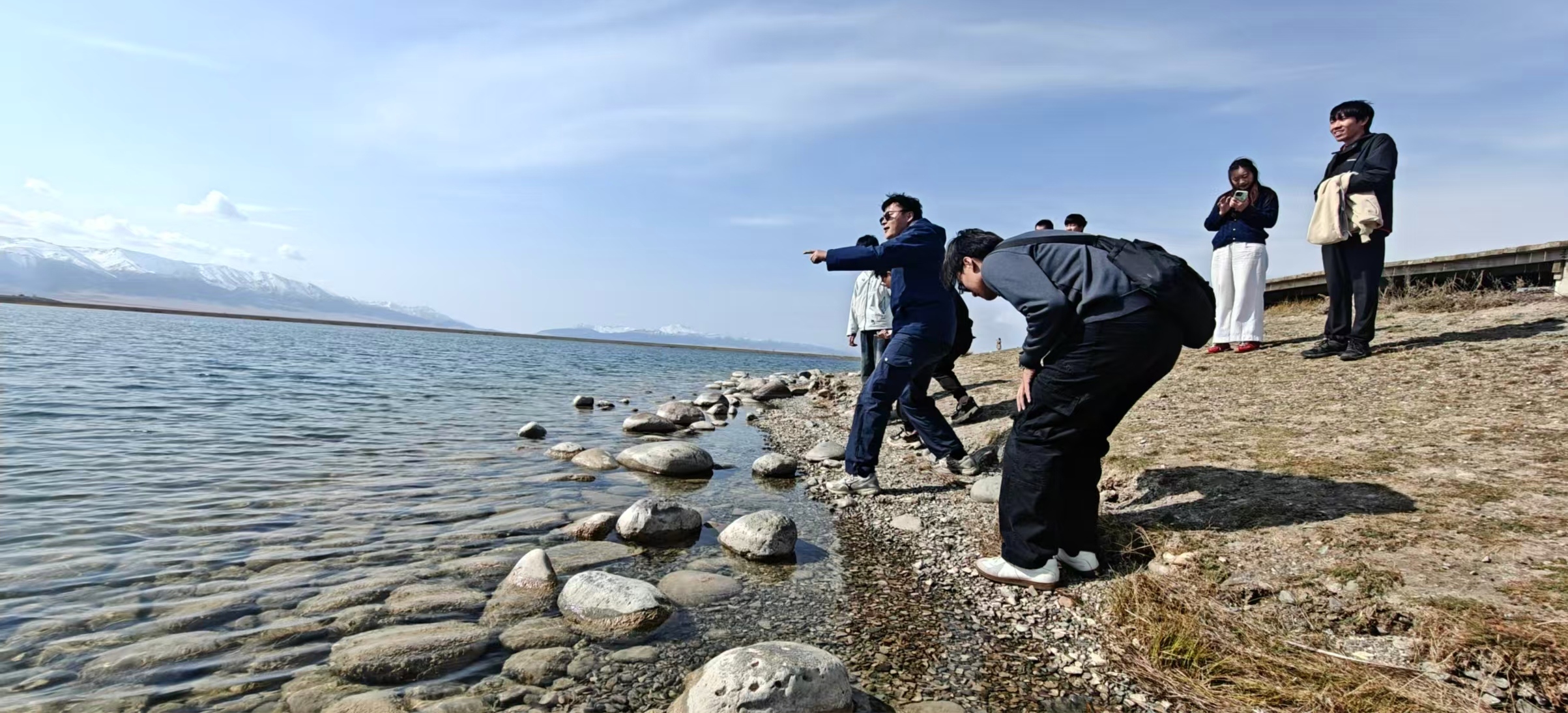撒貝寧說過一句話:“賽里木湖都沒去過,白活了!”于是我們最后一站就來到了賽里木湖。“大西洋的最后一滴眼淚”賽里木湖給了我們巨大的震撼。湛藍的湖水與雪山、草原交織,如同一幅巨大的油畫。在這里,我們組織了第一次集體活動——“打水漂”團隊競賽,各成員展現出自己的打水漂技能,仿佛又回到了兒時,此刻歡聲笑語回蕩在湖畔。